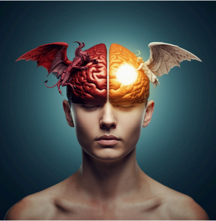 (Bóng tối ở bên trái, ánh sáng và linh hồn ở bên phải – làm rõ cho câu nói “angel on one shoulder and devil on the other”)